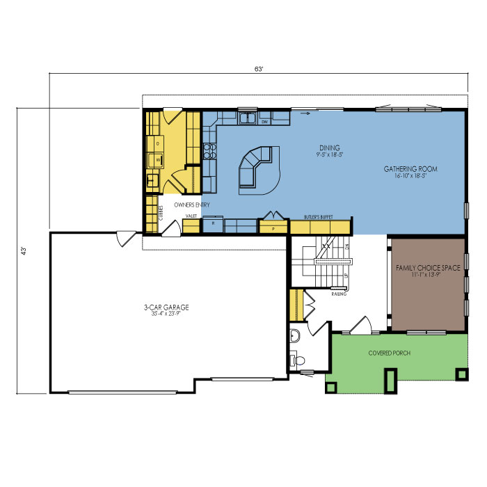 A part of our Designer Series, the Augusta floor plan features 3 bedrooms and 3.5 bathrooms, 2 stories, a 3-car garage, a footprint of 63x43 feet, and 2815 total square feet of living space. Floor Plan #DN250