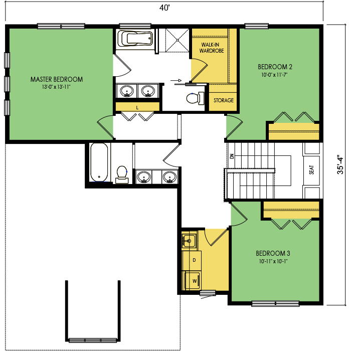 A part of our dream series, the tamarack floor plan features 3 bedrooms and 1.5 bathrooms with a foot print of 44x30 feet and 1342 total square feet of living space.