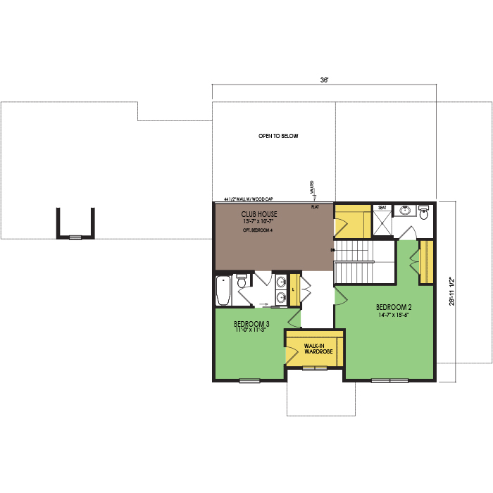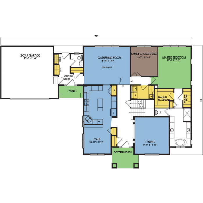 A part of our dream series, the tamarack floor plan features 3 bedrooms and 1.5 bathrooms with a foot print of 44x30 feet and 1342 total square feet of living space.