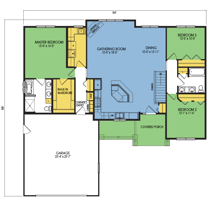A part of our Resort Series, the Farnham floor plan features 3 bedrooms and 2 bathrooms with a foot print of 58x56 feet and 1754 total square feet of living space. Floor Plan #RN133