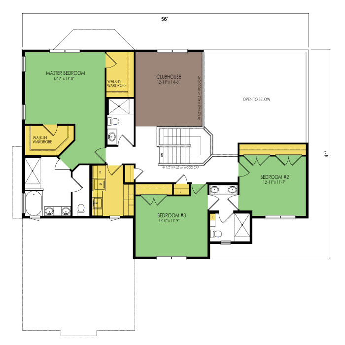 A part of our dream series, the tamarack floor plan features 3 bedrooms and 1.5 bathrooms with a foot print of 44x30 feet and 1342 total square feet of living space.