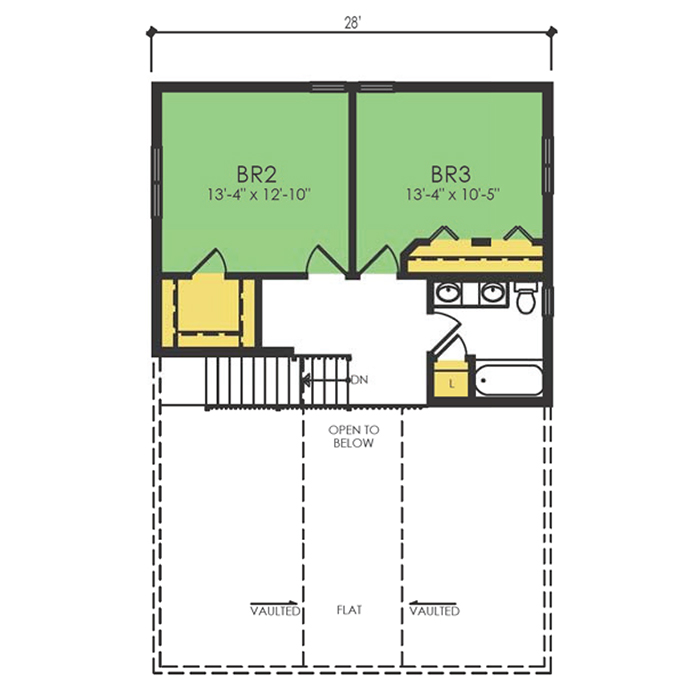 A part of our Wausau Originals, the Hidden Glen floor plan features 3 bedrooms and 2.5 bathrooms with a foot print of 58x42 feet and 1808 total square feet of living space. Floor Plan #WO650