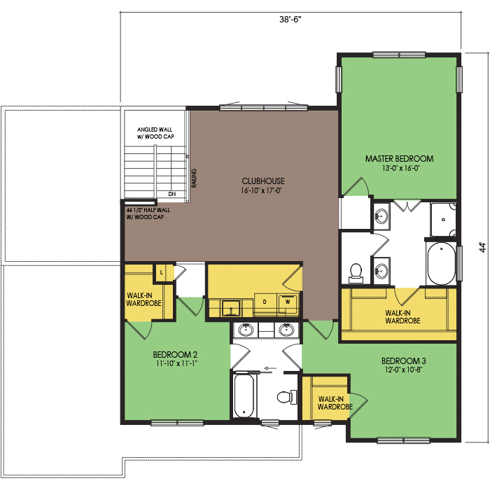 A part of our dream series, the tamarack floor plan features 3 bedrooms and 1.5 bathrooms with a foot print of 44x30 feet and 1342 total square feet of living space.